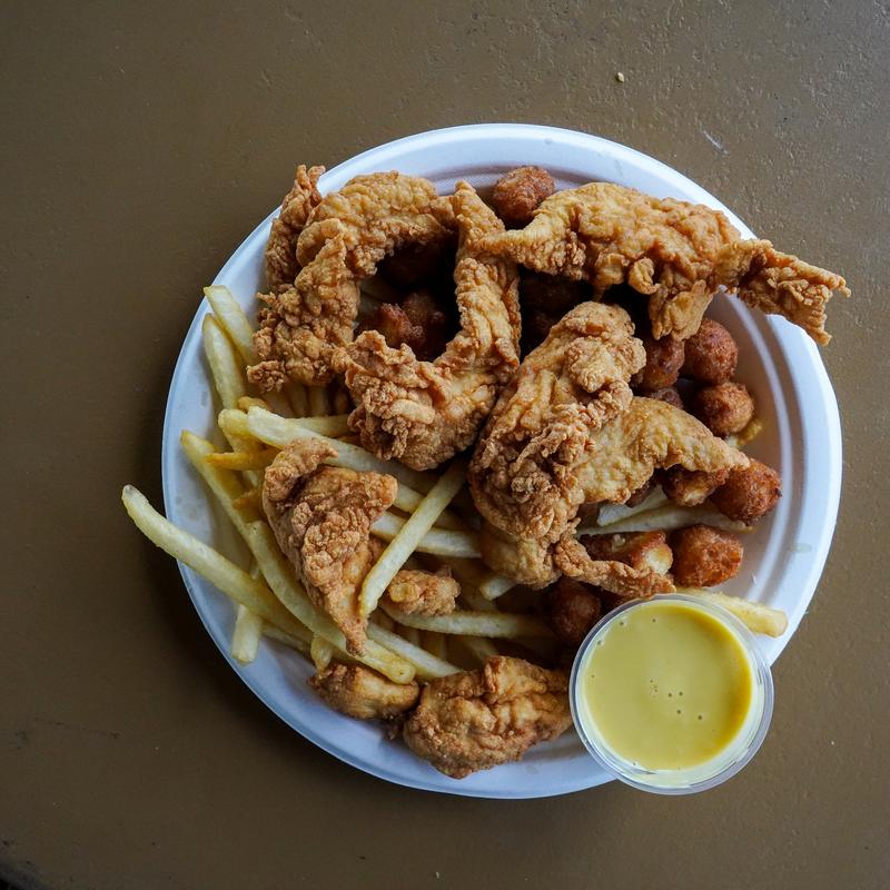 4oz of Fried Chicken Tenderloins with Crispy Fries & 1 sauce